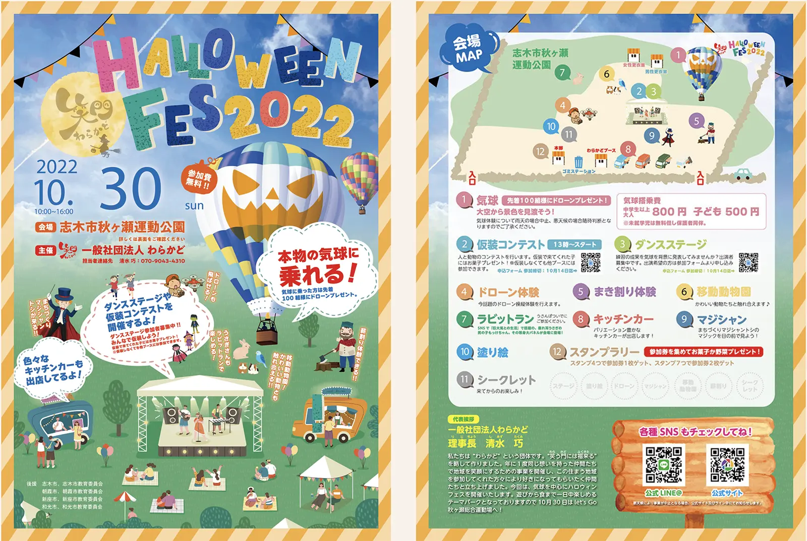 一般社団法人わらかど(所在地:埼玉県)は、地域の交流促進と子どもたちの健全育成、地域経済の活性化を目的とした大型イベント「ハロウィンフェスティバル2022」を、2022年10月30日(日)に開催いたしました。本イベントは、埼玉県朝霞市・新座市・志木市・和光市にゆかりのある企業・団体・自治体の協力により実施され、当日は多くの来場者で賑わいました。